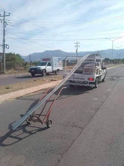 نخستین چیزی که در عکس بچشم می آید, البته برای ما بسیار آشناست. اما ظاهرا تصویر مربوط به کشوری دیگر می باشد. میدانیم که طبق اصول راهنمائی و رانندگی, برای حمل هر بار باید از کشنده ای استفاده نمود که متناسب با طول بار باشد.