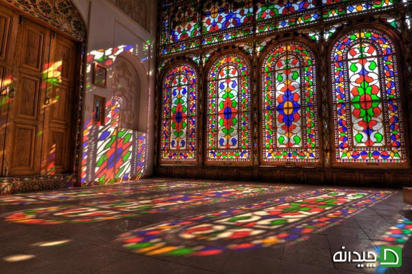 نمونه بازی نور بسیار زیبا در اثر تابش نور خورشید به شیشه رنگی در معماری سنتی ایرانی !