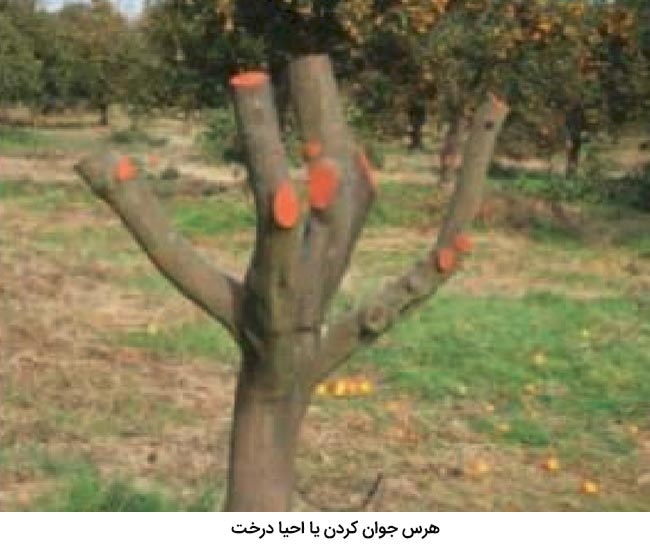 با رنگ تیره محل هرس شاخه های فرعی, میتوان مانع رسیدن نور به این قسمت از تنه درختان گردید !