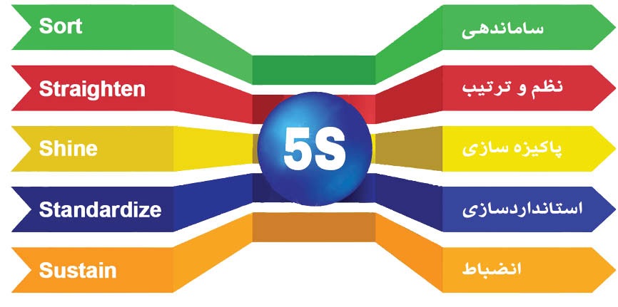 این آموزش را بدان جهت ” 5S ” نامیده اند که حرف اول پنج اصل مدیریتی است که در زبان ژاپنی با ” S ” شروع میشود : یک : ساماندهی (Seiri)/  دو : نظم و ترتیب (Seiton)/  سه : پاکیزه‌سازی (Seiso)/  چهار : استانداردسازی /  (Seiketsu)  پنج : حفظ و نگهداری (Shitsuke)