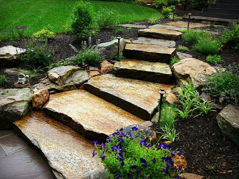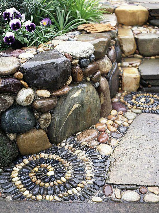 نمونه کار با سنگهای رودخانه ای در حیاط یک خانه