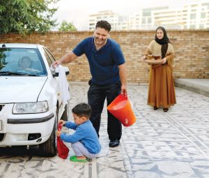 همینطور نگاه پدر به پسر, که سرشار از رضایت, غرور و . . . تحسین است و تمرکز خاص پسر بر کاری ” مردانه ” و . . . صرفه جوئی آب در شستشوی خودرو که بویژه در این روزهای بی آبی در شهرها, از اهمیت فوق العاده برخوردار است.